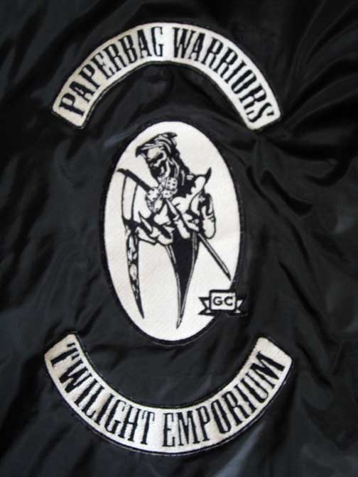 Well I'm not really that different. For our gaming group we wanted to do something different than t-shirts, so after some discussion we decided on motorcycle style patches. My vest has the club name and my store on the back. On the front, is my forum name and club title.
