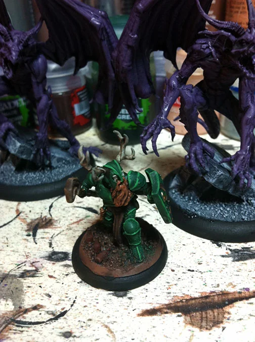Also part of this job are some really cool looking Gargoyles. The quality of the casts on these was pretty poor so I had to do some intensive re-sculpting and bubble filling. Once that was done though the models are beautiful. I opted to do these in a purple color to differentiate them from the stone base.
