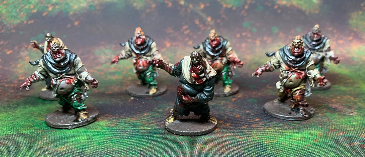 The Survivors were painted in a mixture of browns and tans to match the card art. I’m pretty happy with how thee turned out. The basing is just a coat of Games Workshop’s texture paint, it’s neutral enough to match most of the boards in the game and adds a little more character to the models than a basic black base.